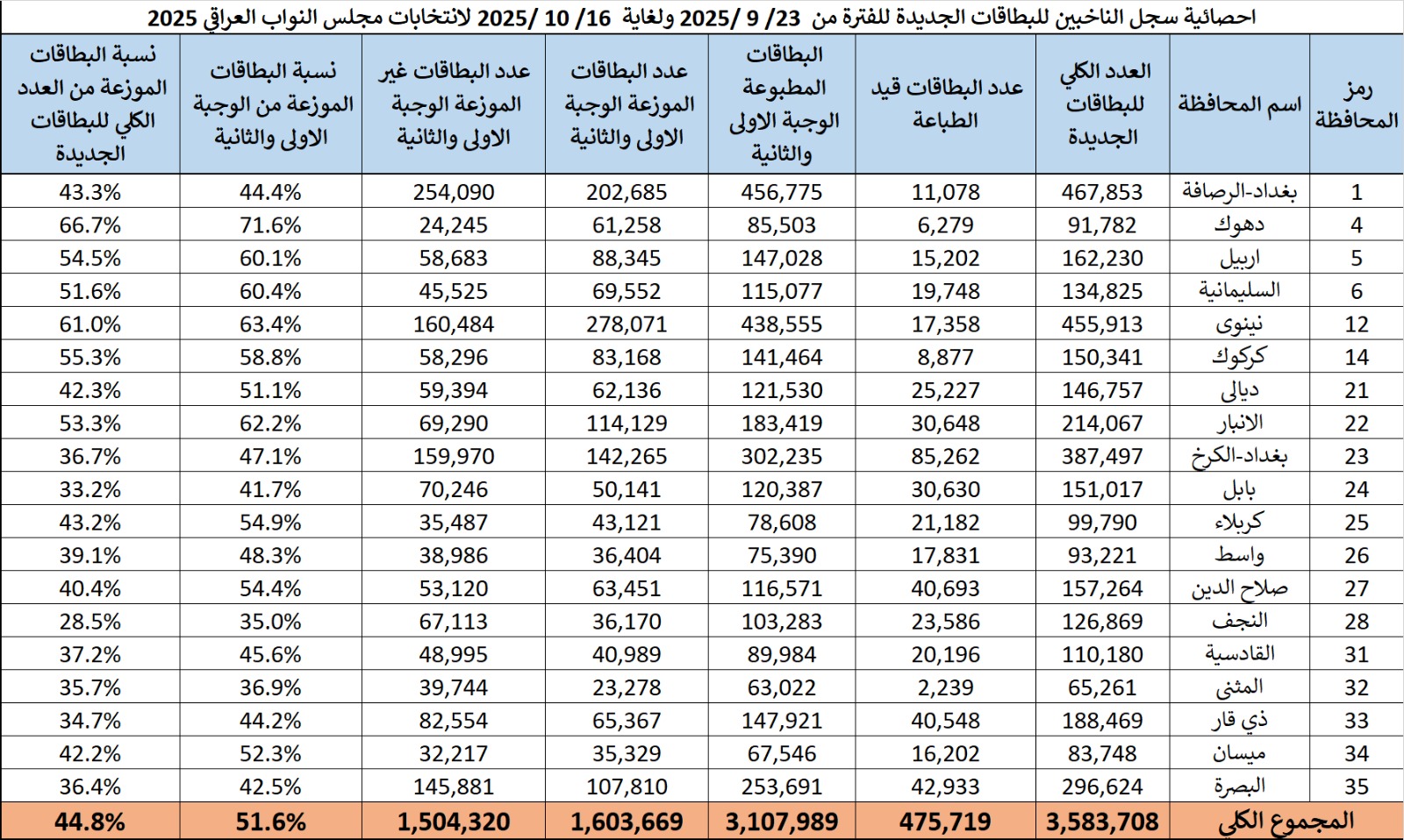 المفوضية تنشر آخر إحصائية لسجل الناخبين للبطاقات الجديدة