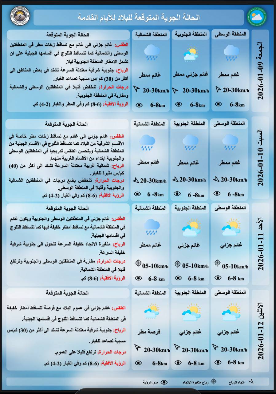 طقس العراق .. أمطار وثلوج وانخفاض في درجات الحرارة لأربعة أيام متتالية