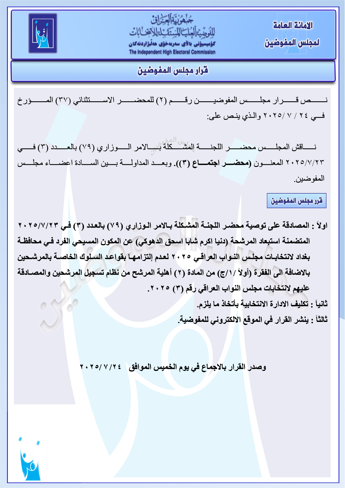 قرر مجلس المفوضين، في المفوضية العليا المستقلة للانتخابات، استبعاد مرشحة من المكوّن المسيحي في محافظة بغداد.