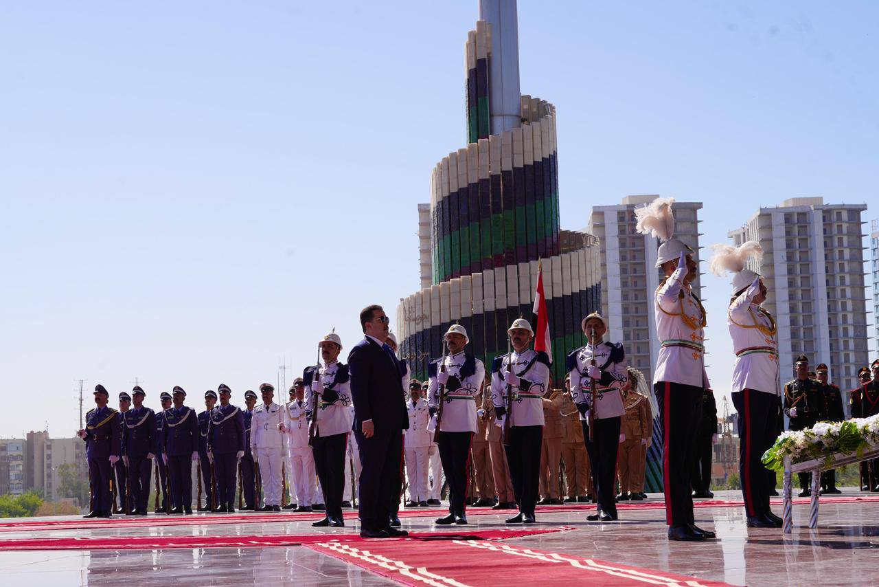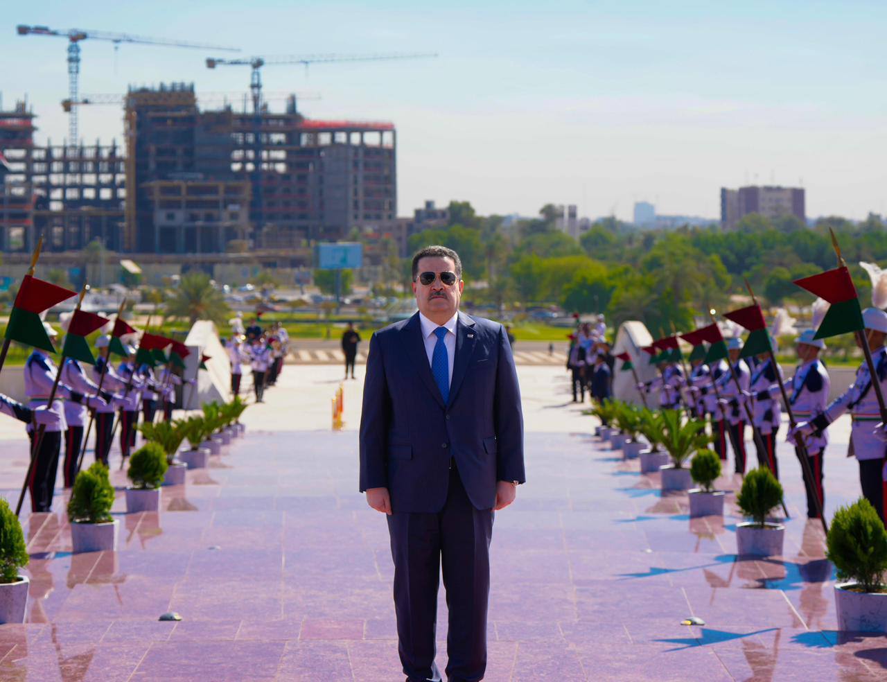 وقرأ السوداني سورة الفاتحة ترحّماً على أرواح شهداء العراق الأبرار، كما جرى عزف النشيد الوطني العراقي، واستعراض حرس الشرف الذي يمثل مختلف صنوف قواتنا المسلحة الباسلة.
