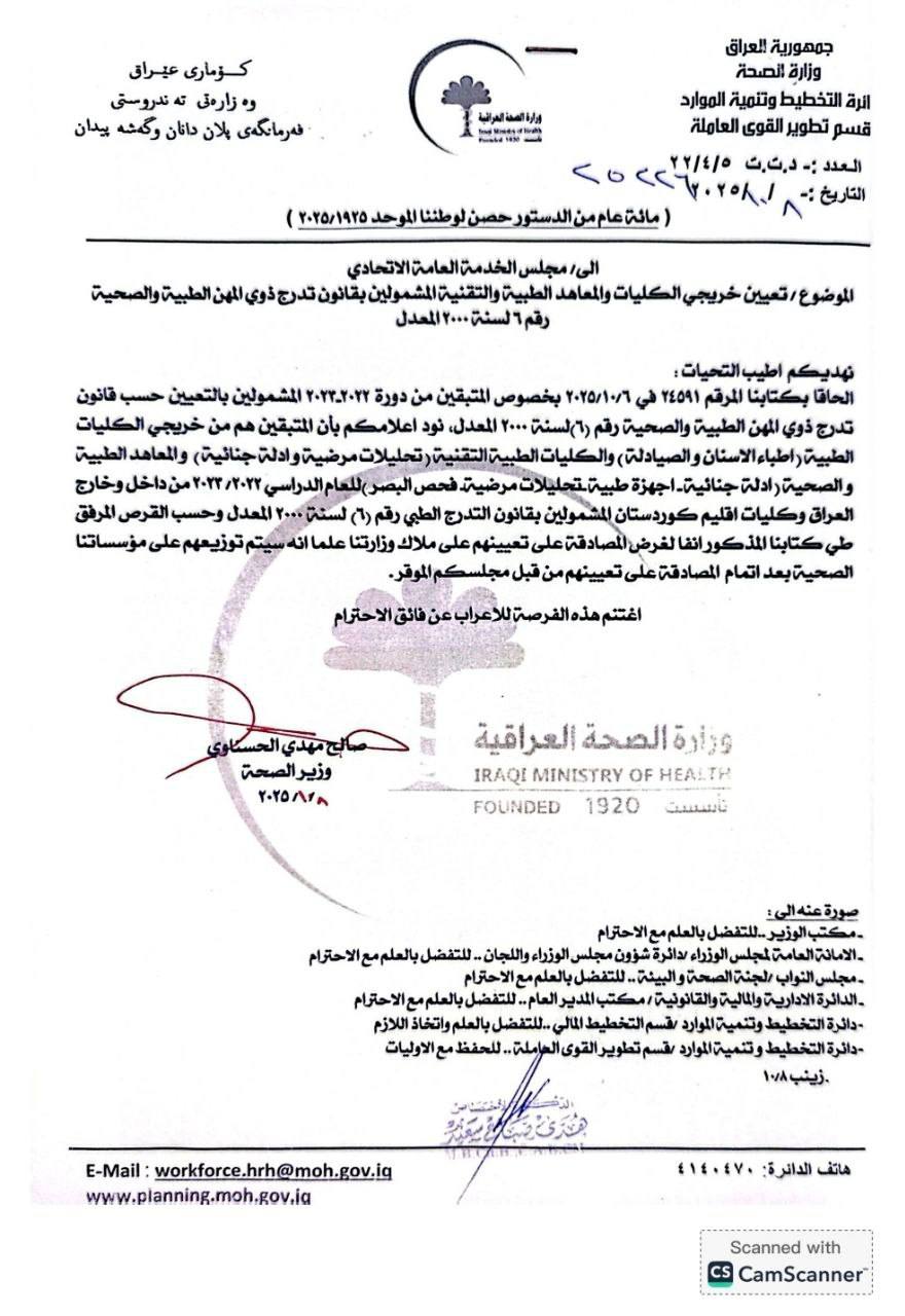 الصحة تخاطب مجلس الخدمة لتعيين خريجي الكليات والمعاهد الطبية المتبقين من دورة 2022-2023