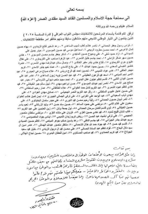 الصدر يوجه بمقاطعة 78 مرشحًا للانتخابات "يعادون مشروع الإصلاح ويريدون تقوية مشروع الفساد"