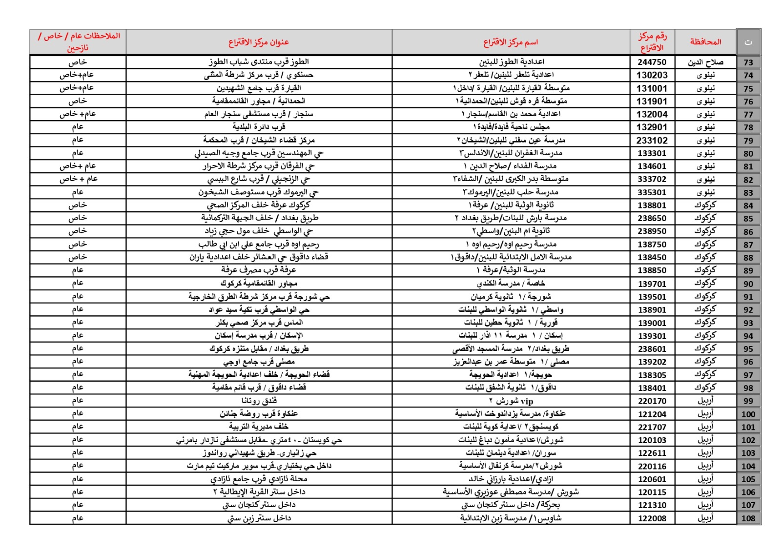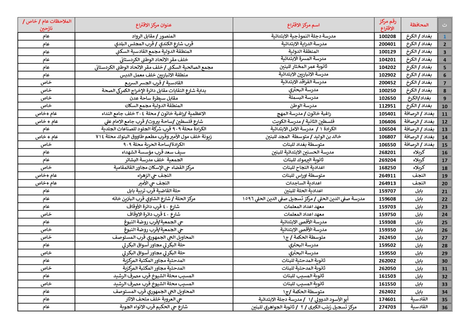 قناة النهرين الفضائية - أعلنت مفوضية الانتخابات، اليوم الأحد، مراكز الاقتراع التي يسمح للإعلام بتغطيتها.