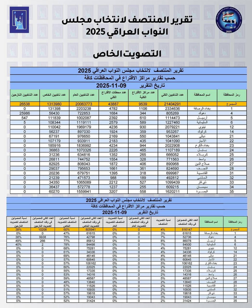 بالأرقام .. المفوضية تعلن تقرير المنتصف لانتخابات مجلس النواب/ التصويت الخاص