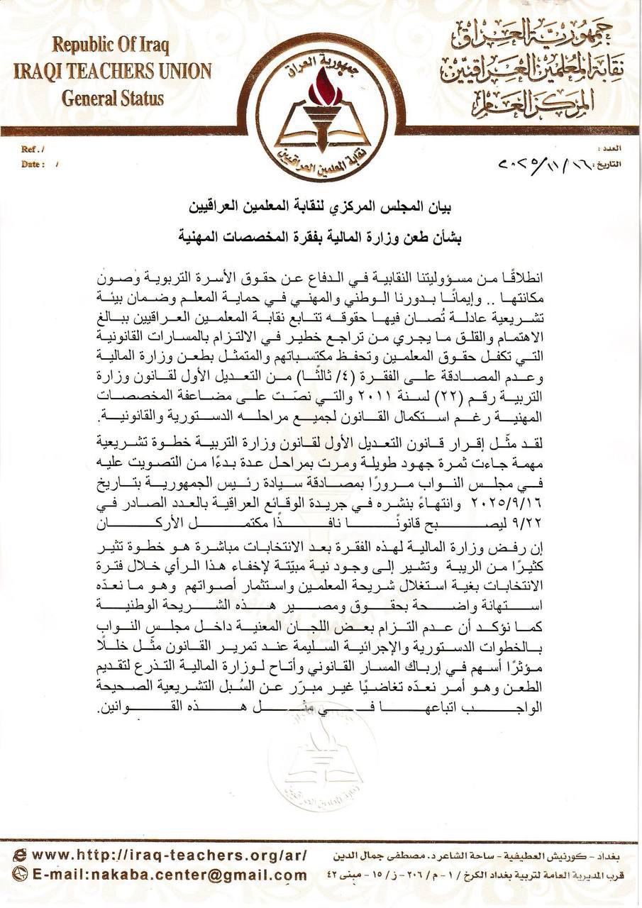 نقابة المعلمين تصعد خطواتها الاحتجاجية بعد طعن وزارة المالية بقانون التربية