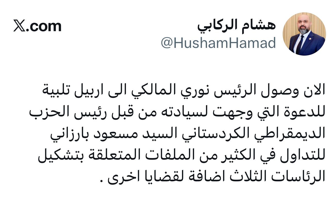 المالكي يصل أربيل بدعوة من مسعود بارزاني لبحث تشكيل الرئاسات الثلاث