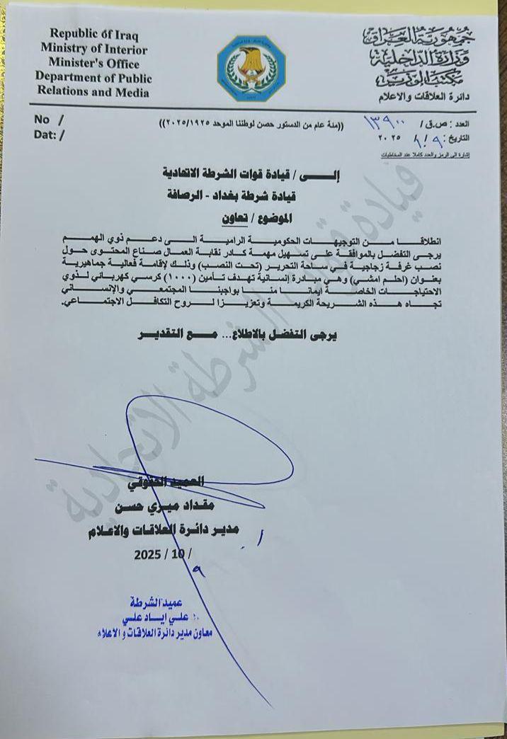 أصدر الاتحاد العام لنقابات العمال في العراق، اليوم السبت بياناً حول مبادرة “الغرفة الزجاجية” في ساحة التحرير.