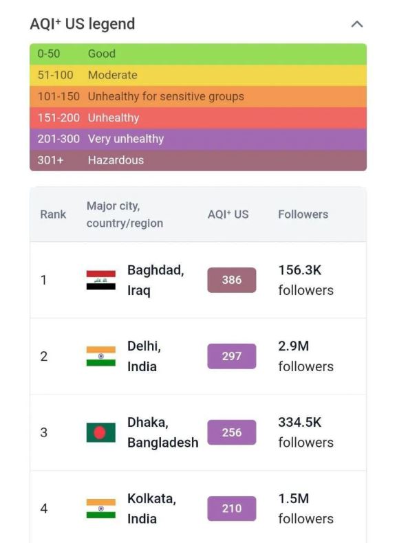 و للمرة الأولى حلت بغداد في المرتبة الاولى عالميا بمستوى التلوث، وفقا للمؤشر العالمي لجودة الهواء.