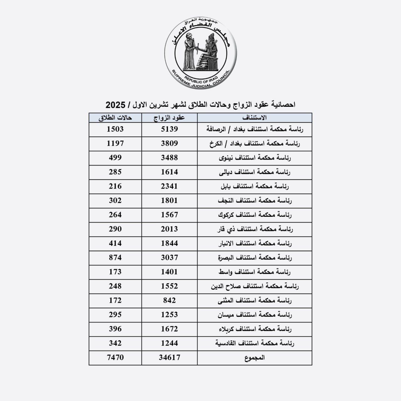 34 ألف عقد زواج و7 آلاف حالة طلاق خلال تشرين الأول 2025