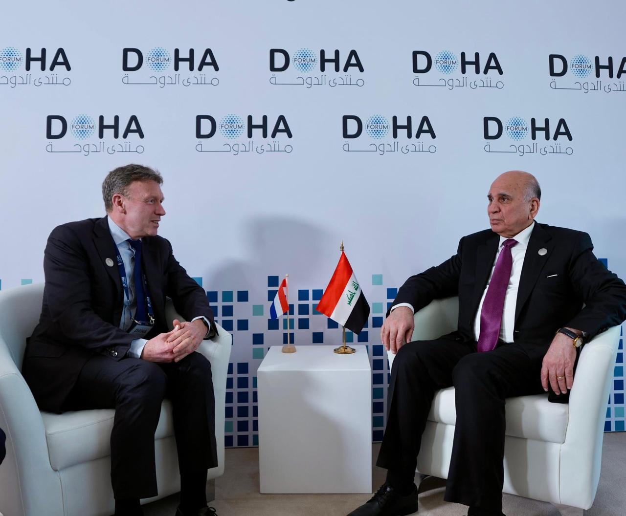 التقى نائب رئيس مجلس الوزراء ووزير الخارجية فؤاد حسين، يوم السبت، نائبَ وزير الخارجية للشؤون السياسية في مملكة هولندا، مارسيل دي فينك، وذلك على هامش أعمال منتدى الدوحة في نسخته الـ23.
