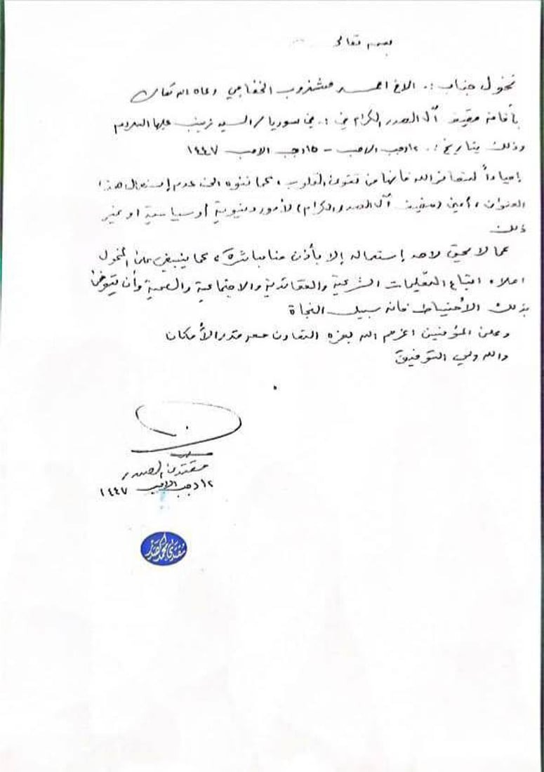 وكلّف الصدر - بحسب بيان صادر عن مكتبه - "مشذوب الخفاجي" بافتتاح "مضيف آل الصدر الكرام" في سوريا في منطقة السيدة زينب بالعاصمة دمشق.