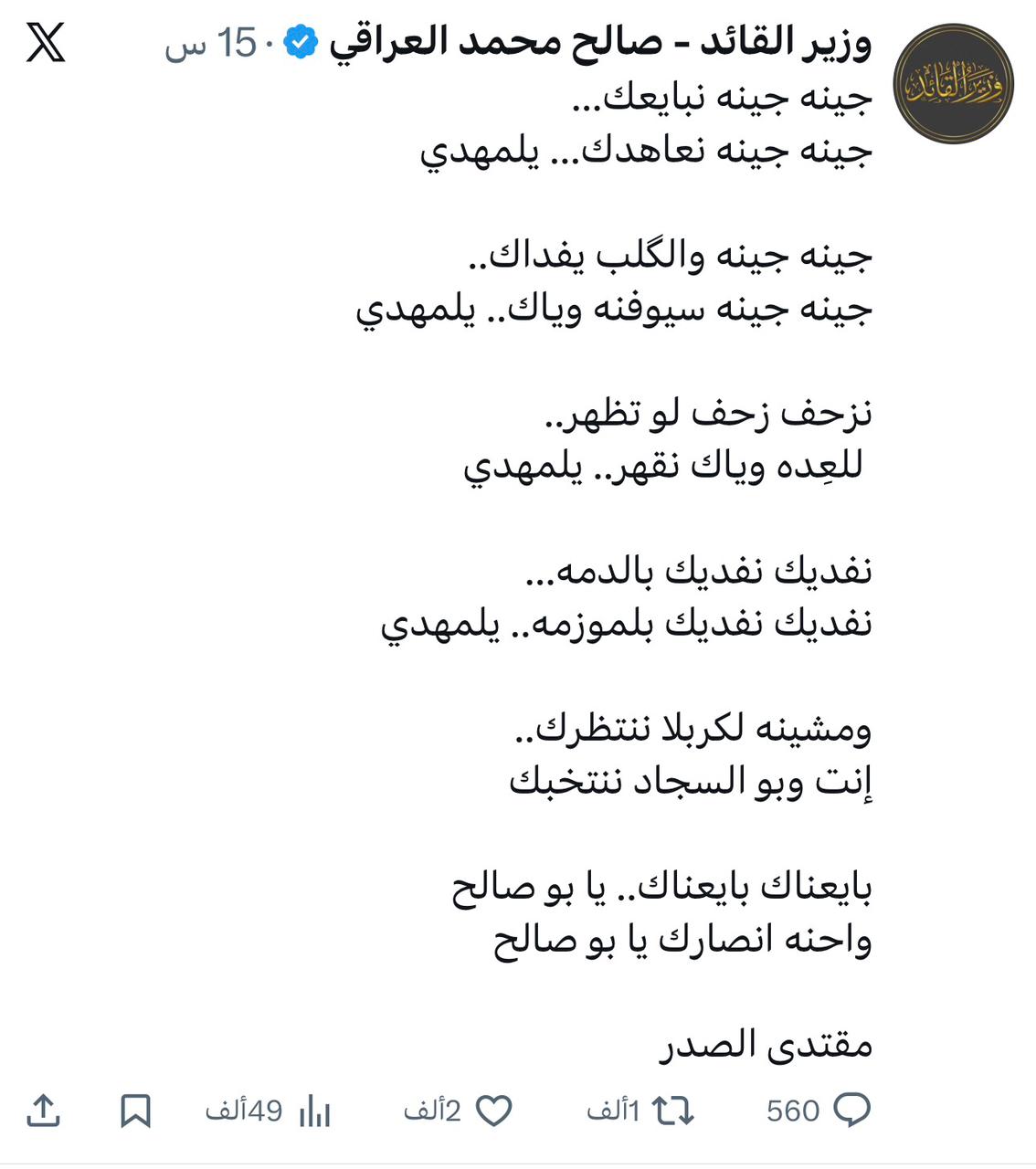 الصدر يحشّد للزيارة الشعبانية بـ"أبيات شعرية"